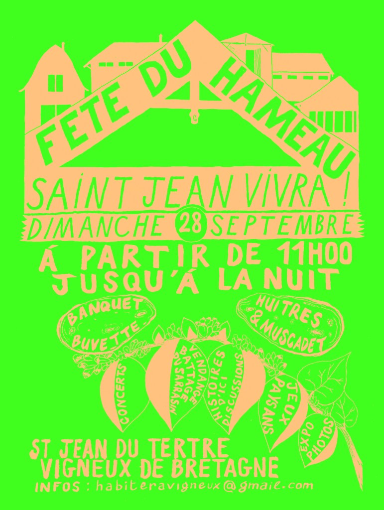 Nous aspirons à ce que Saint Jean du Tertre reste ce qu’il est et a été : un hameau vivant et habité, peuplé de paysan·nes et d’artisan·es inscrit·es dans un dense tissu amical et familial. Pour célébrer nos 12 ans de vie commune sur ce hameau et marquer notre volonté d’y rester encore pour un bail, nous vous invitons à une grande fête le dimanche 28 septembre prochain.